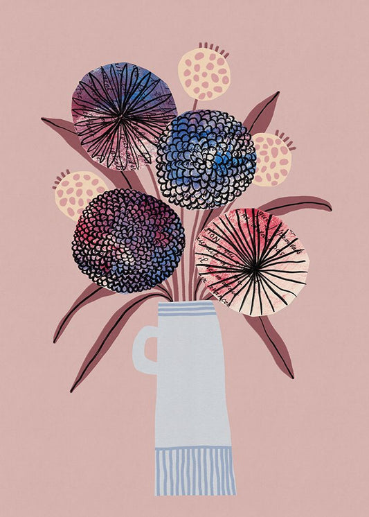 Scandi japandi flowers 1 Black Modern Wood Framed Art Print by Manovski, Sarah