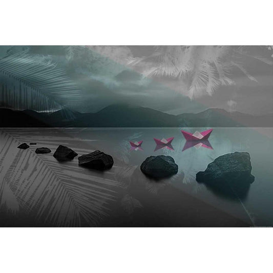 Rocks Black Modern Wood Framed Art Print by Kat
