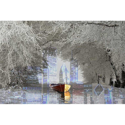 Skyline Black Modern Wood Framed Art Print by Kat