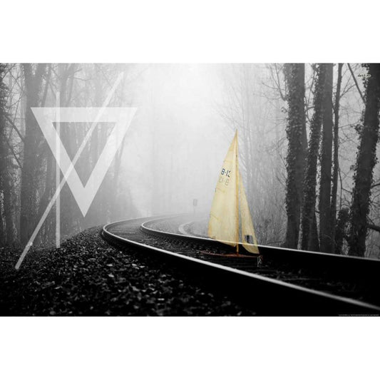Railroad Black Modern Wood Framed Art Print by Kat