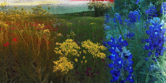 36x60 Texas Wildflowers (ASH) White Modern Wood Framed Art Print with Double Matting by Jasper, Sisa