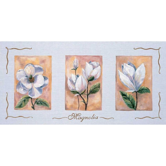 Magnolia Triptychon Black Modern Wood Framed Art Print by Withaar, Rian