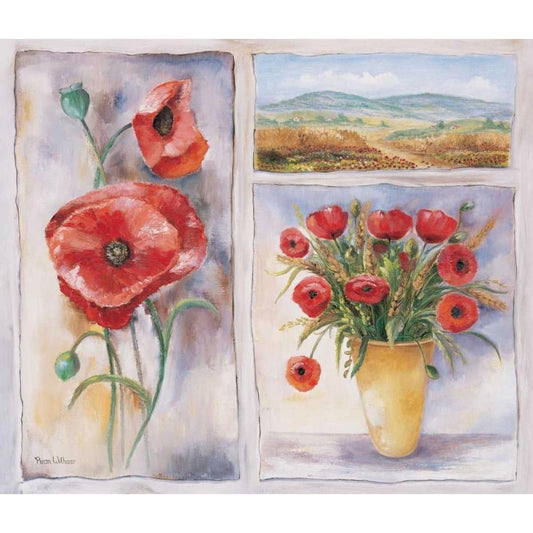 Blue poppy composition Black Modern Wood Framed Art Print by Withaar, Rian