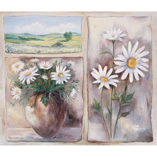 White lily Triptychon Black Modern Wood Framed Art Print by Withaar, Rian