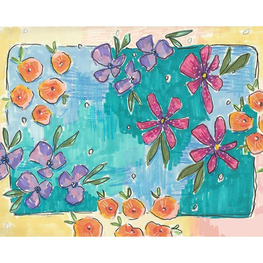 Totally Teal Floral Black Modern Wood Framed Art Print by Wieners, Valerie