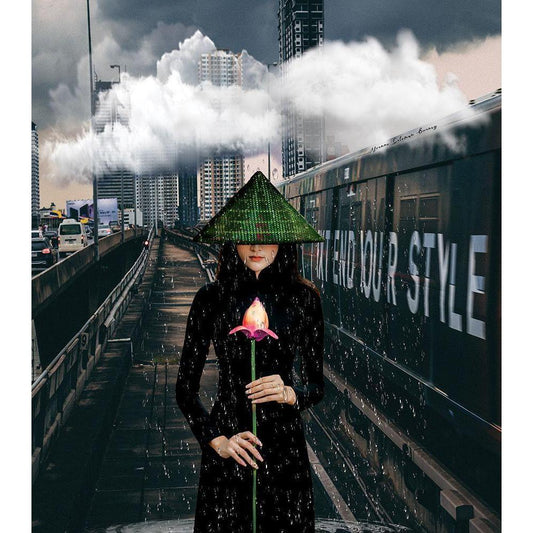 Walking in the Rain Black Modern Wood Framed Art Print by Burney, Yvonne Coleman
