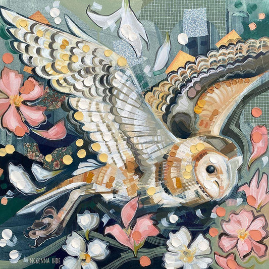 Barn Owl in Flight Black Modern Wood Framed Art Print by Ihde, McKenna