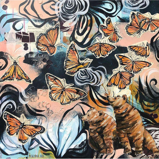 Bears and Monarchs Black Modern Wood Framed Art Print by Ihde, McKenna