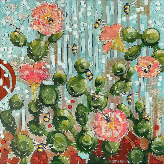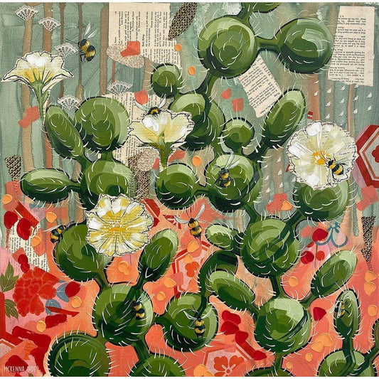 Opuntia and Bees Black Modern Wood Framed Art Print by Ihde, McKenna