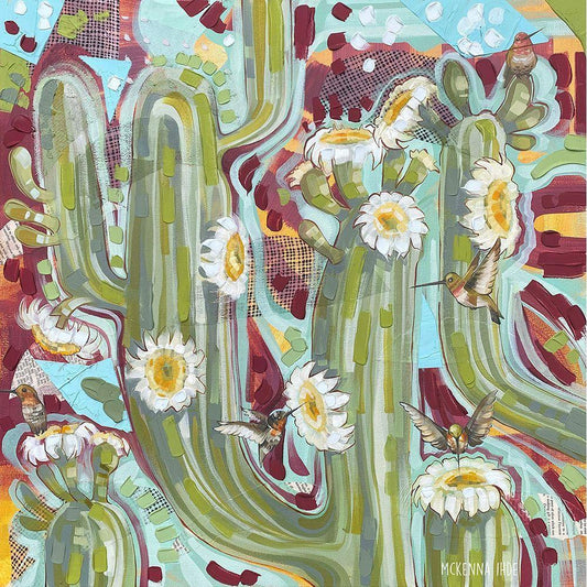 Cactus and Hummers Black Modern Wood Framed Art Print by Ihde, McKenna