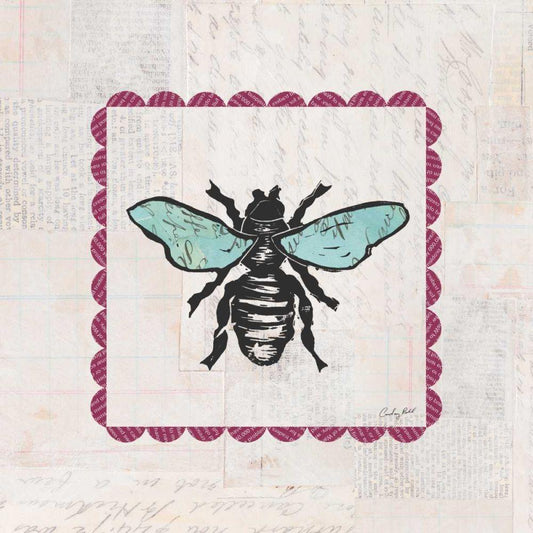 Bee Stamp Bright Black Modern Wood Framed Art Print by Prahl, Courtney
