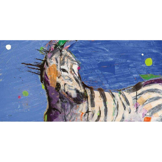 Zebra Blue Black Modern Wood Framed Art Print by Day, Kellie