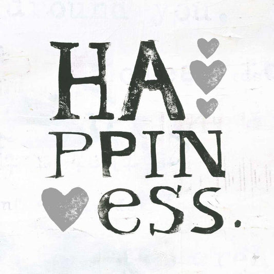 Happiness Gray Hearts Black Modern Wood Framed Art Print by Day, Kellie