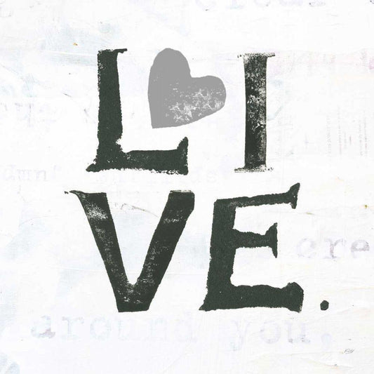 Live Gray Heart Black Modern Wood Framed Art Print by Day, Kellie