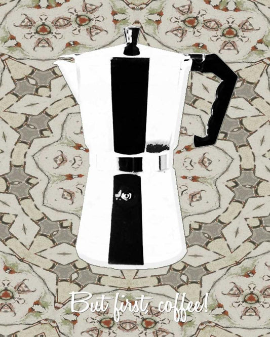 But first coffee I White Modern Wood Framed Art Print with Double Matting by Waltz, Anne