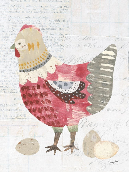 Patchwork Chickens I White Modern Wood Framed Art Print with Double Matting by Prahl, Courtney