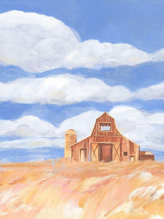 Wheatfield Barn I White Modern Wood Framed Art Print with Double Matting by Warren, Annie