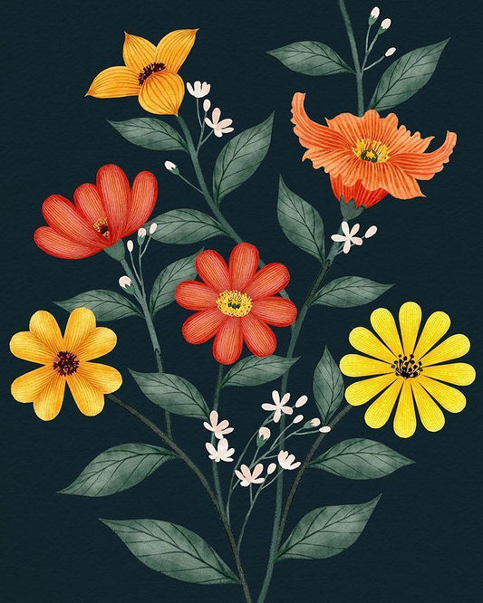 Indian Summer Bouquet I White Modern Wood Framed Art Print with Double Matting by Caroline, Emma