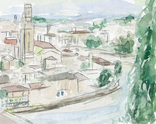 City on the River I White Modern Wood Framed Art Print with Double Matting by Wang, Melissa
