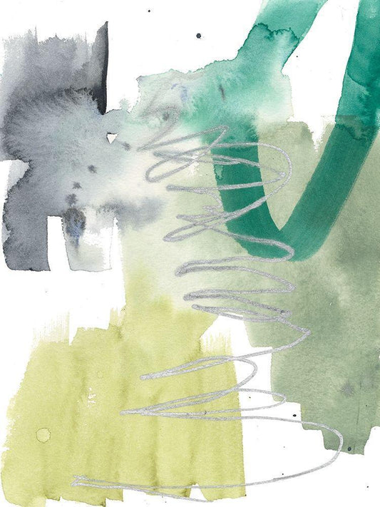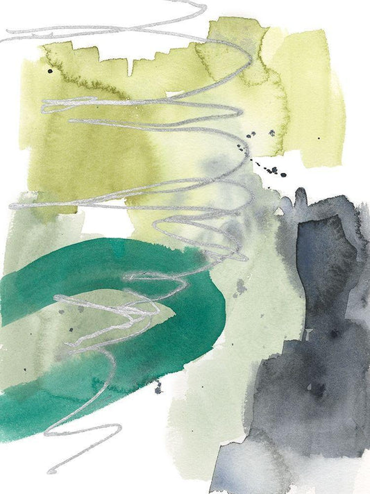 Graffiti Green II White Modern Wood Framed Art Print with Double Matting by Goldberger, Jennifer