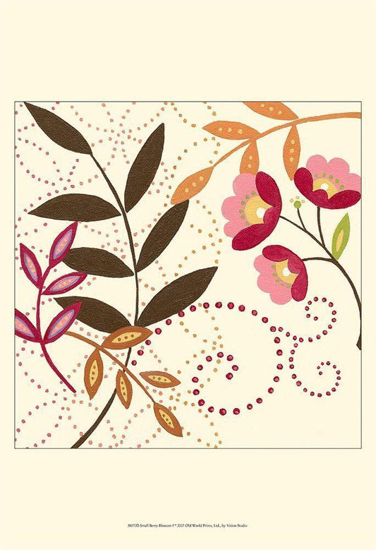 Small Berry Blossom I White Modern Wood Framed Art Print with Double Matting by Vision Studio