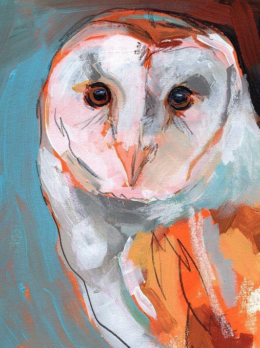 Optic Owl I White Modern Wood Framed Art Print with Double Matting by Parker, Jennifer Paxton