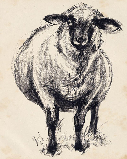 Charcoal Sheep II White Modern Wood Framed Art Print with Double Matting by Parker, Jennifer Paxton