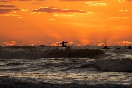 Surfer at sunset White Modern Wood Framed Art Print with Double Matting by YuvalRegular price From $39.99 USDRegular priceUnit price per-