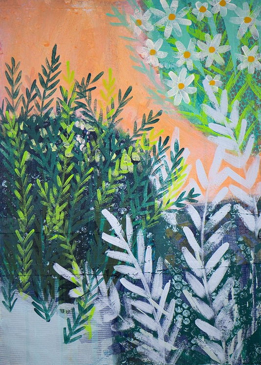 Flower Covered Visions White Modern Wood Framed Art Print with Double Matting by Hampe, Shelley