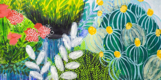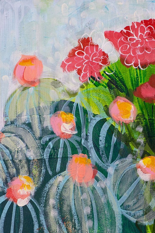 Floral Cactus White Modern Wood Framed Art Print with Double Matting by Hampe, Shelley