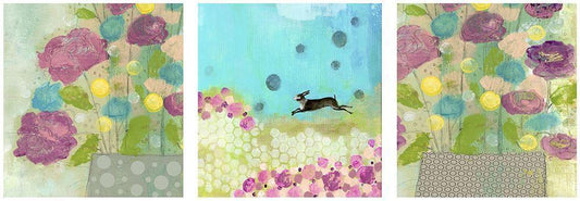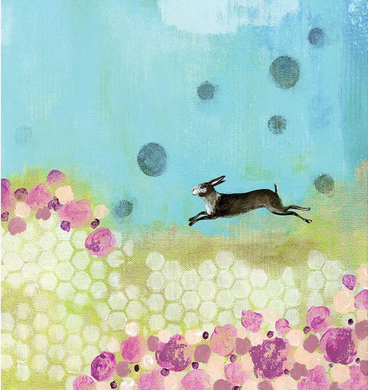 Purple and Yellow Bunny White Modern Wood Framed Art Print with Double Matting by Ogren, Sarah