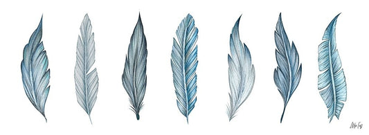 Teal Feathers White Modern Wood Framed Art Print with Double Matting by Fay, Mela