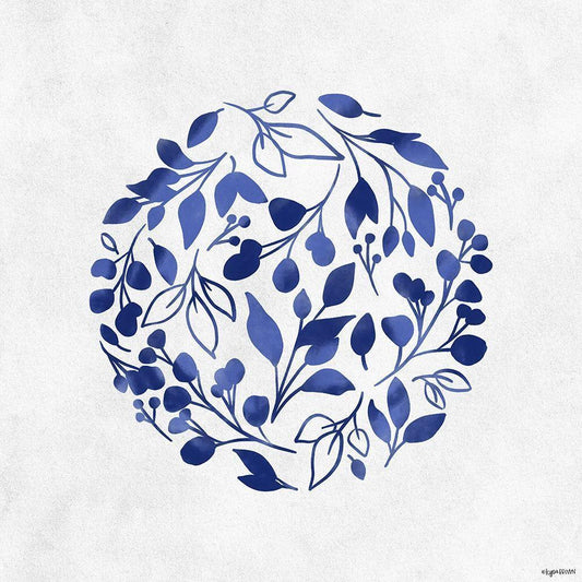 Blue Floral White Modern Wood Framed Art Print with Double Matting by Brown, Kyra