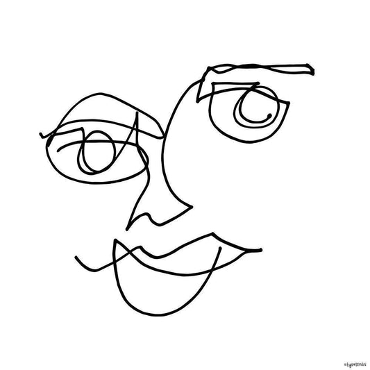 Line Face White Modern Wood Framed Art Print with Double Matting by Brown, Kyra