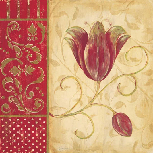 Red Tulip I White Modern Wood Framed Art Print with Double Matting by Moulton, Jo
