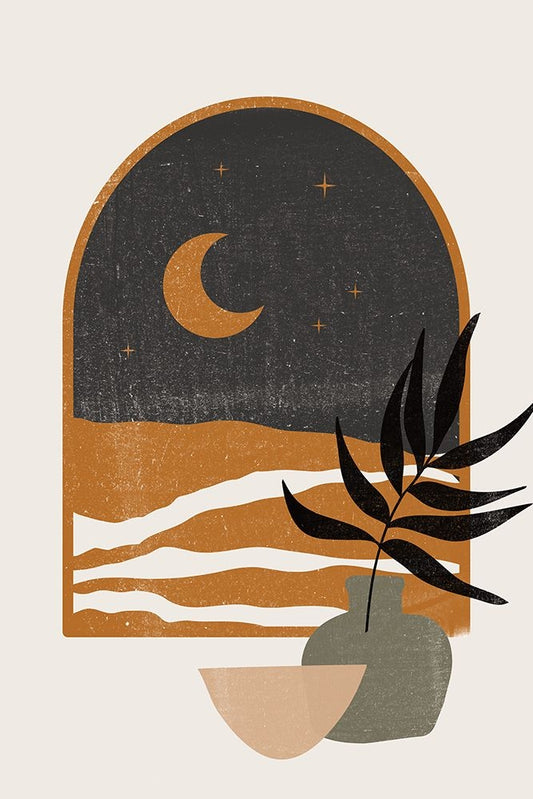Moon View White Modern Wood Framed Art Print with Double Matting by JJ Design