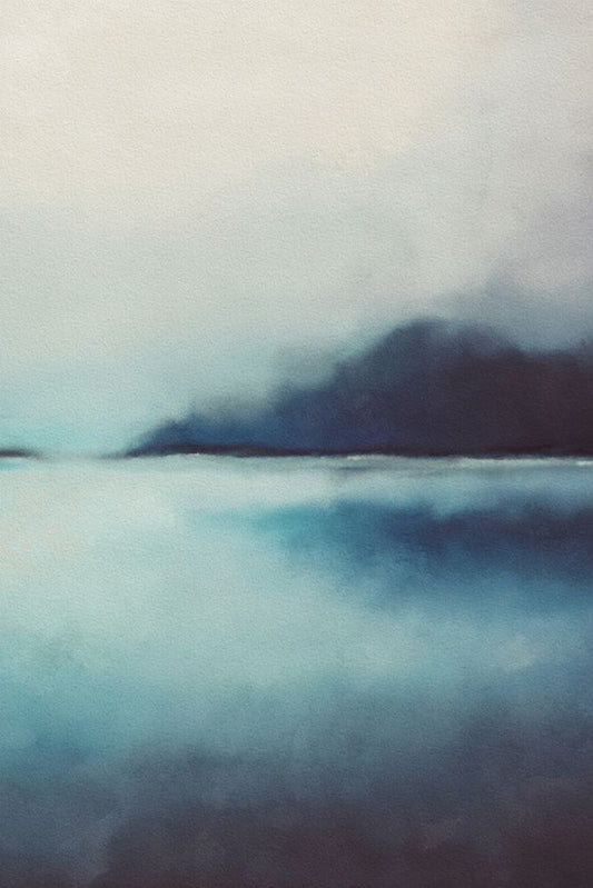 Misty Blue Landscape White Modern Wood Framed Art Print with Double Matting by JJ Design