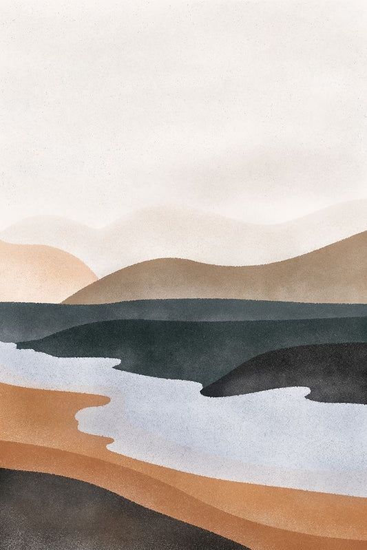Mountain River White Modern Wood Framed Art Print with Double Matting by JJ Design