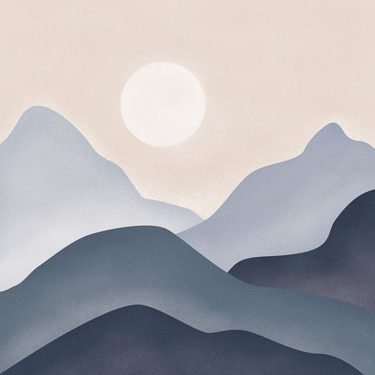 Blue Mountains White Modern Wood Framed Art Print with Double Matting by JJ Design