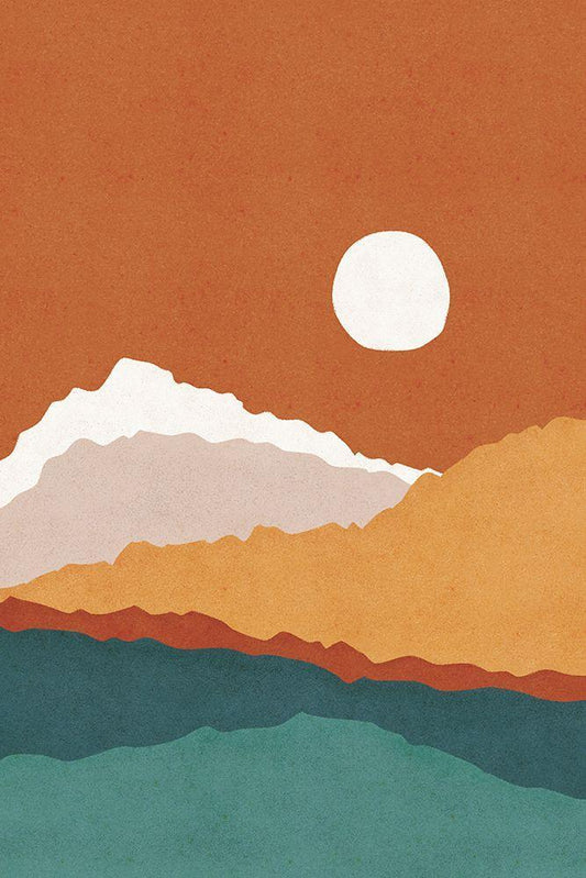 Mountains White Modern Wood Framed Art Print with Double Matting by JJ Design
