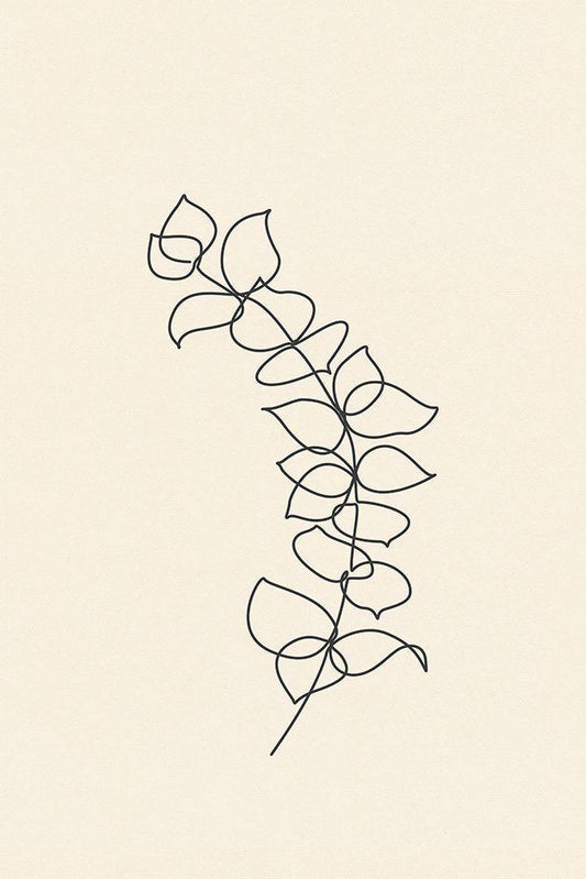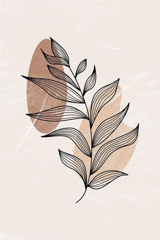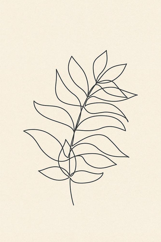 Leaf Line Art White Modern Wood Framed Art Print with Double Matting by JJ Design House