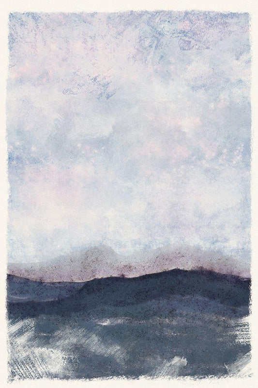 Blue Mountains White Modern Wood Framed Art Print with Double Matting by JJ Design