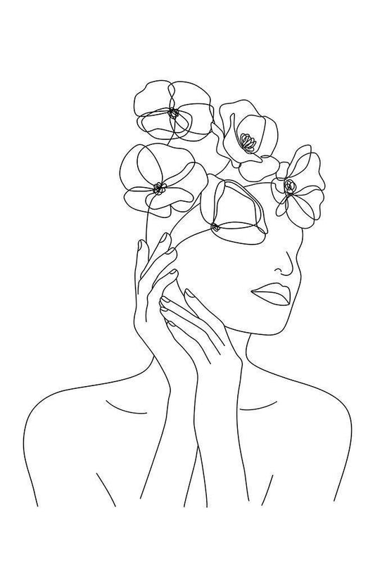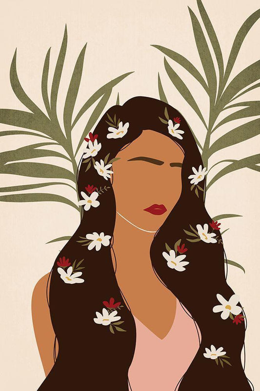 Flowers in Hair White Modern Wood Framed Art Print with Double Matting by JJ Design House