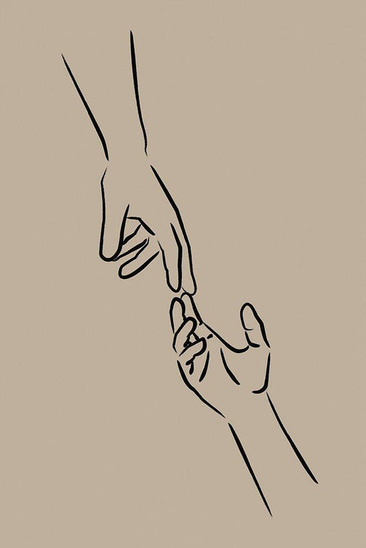 Hands Reaching White Modern Wood Framed Art Print with Double Matting by JJ Design House