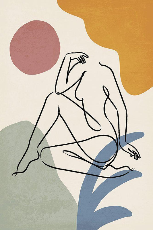 Colorful Nude I White Modern Wood Framed Art Print with Double Matting by JJ Design House