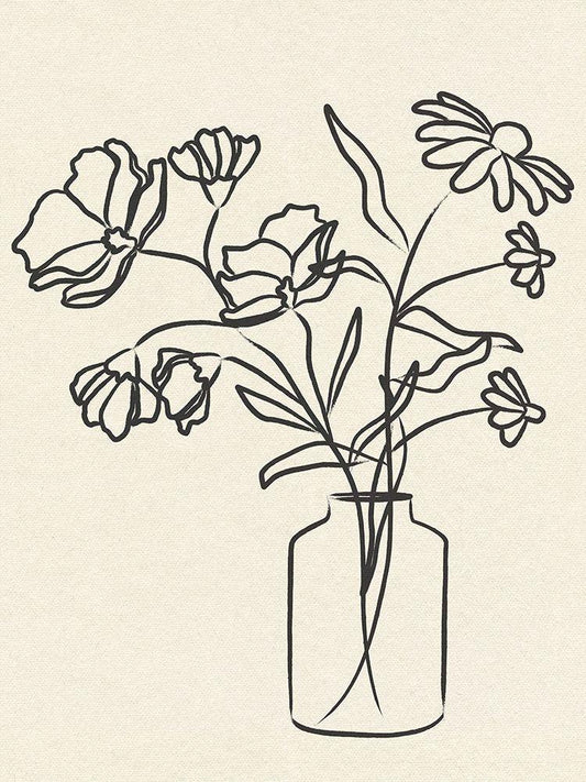 Flowers in Vase I White Modern Wood Framed Art Print with Double Matting by JJ Design House