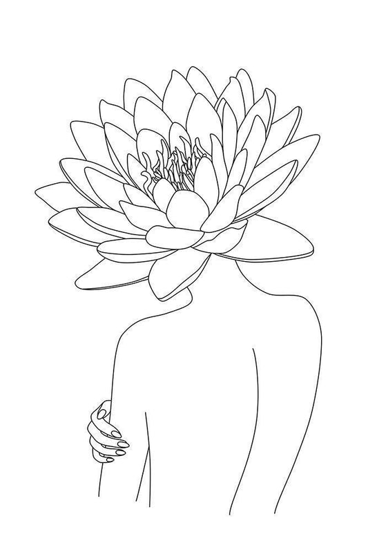 Woman with Flowers White Modern Wood Framed Art Print with Double Matting by JJ Design House