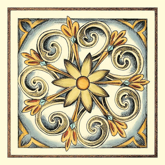 Crackled Cloisonne Tile I White Modern Wood Framed Art Print with Double Matting by Zarris, Chariklia