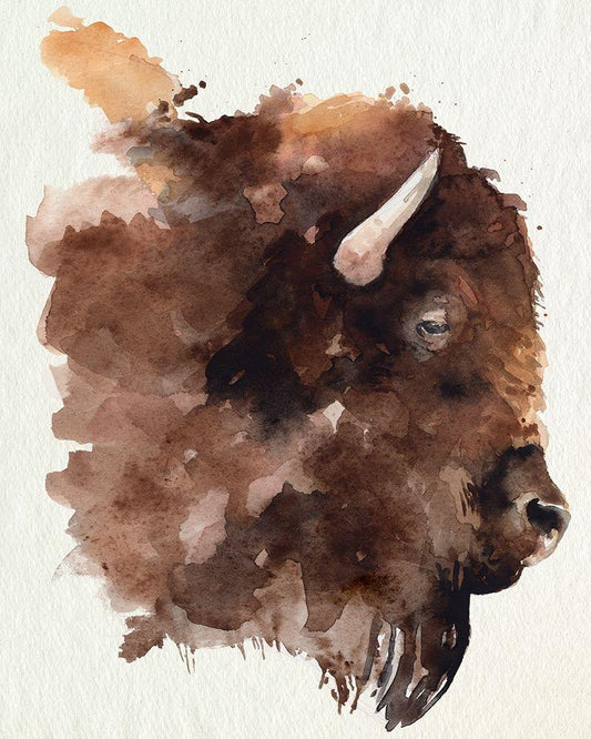 Watercolor Bison Profile I White Modern Wood Framed Art Print with Double Matting by Parker, Jennifer Paxton