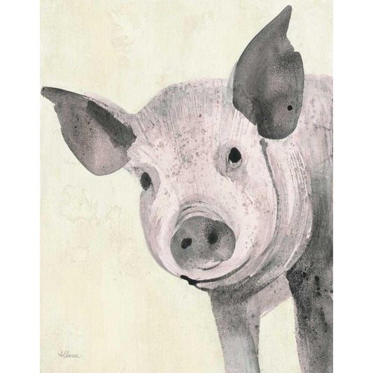 Oink Pink Crop Black Modern Wood Framed Art Print with Double Matting by Hristova, Albena